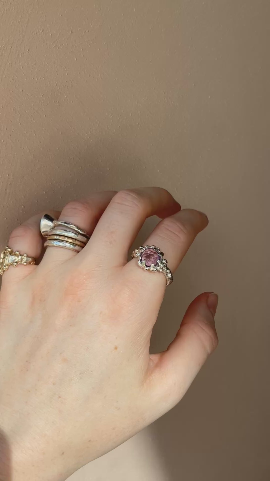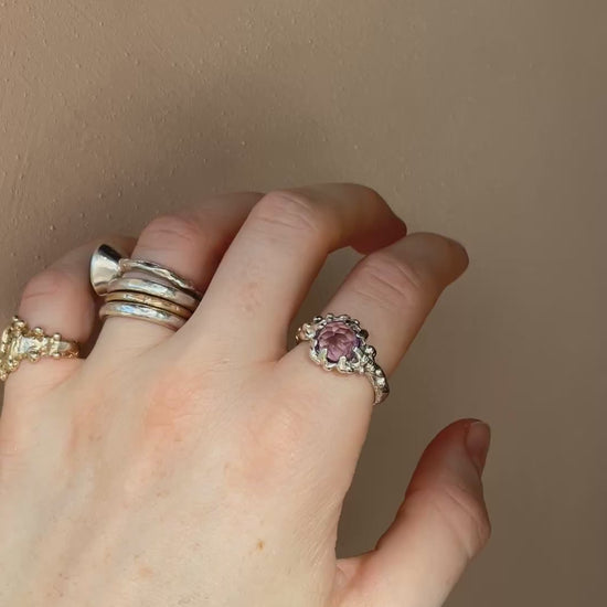 Handmade in the middle of Margate, the Amethyst bobble ring is a chunky, silver ring, with granulation detail that gives a tactile bobble texture. Set with a dreamy purple amethyst.
