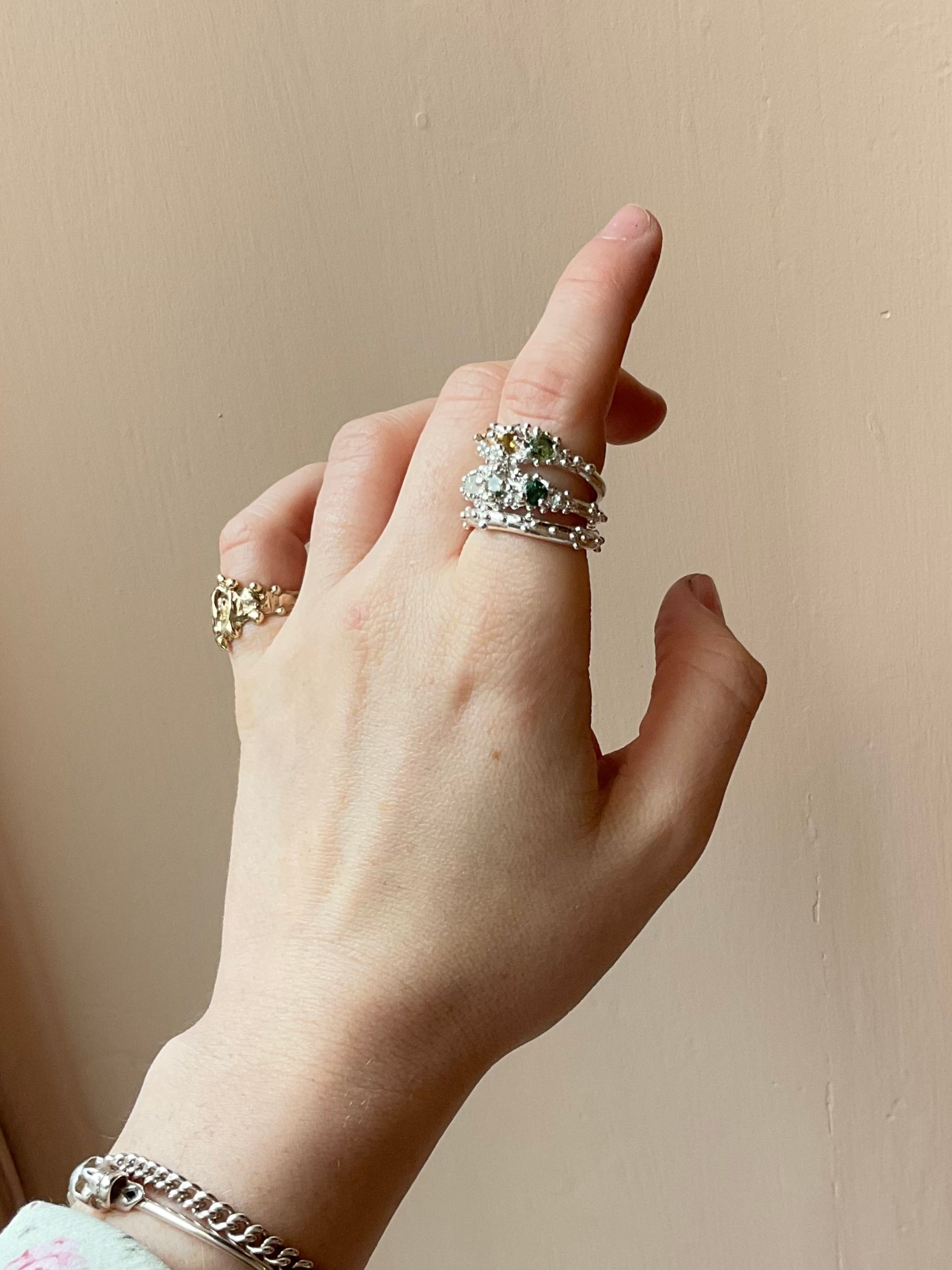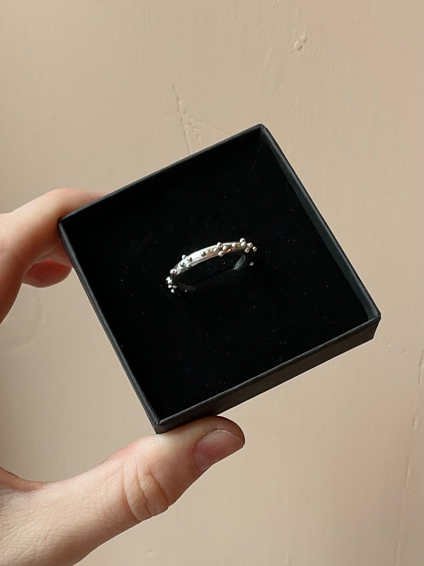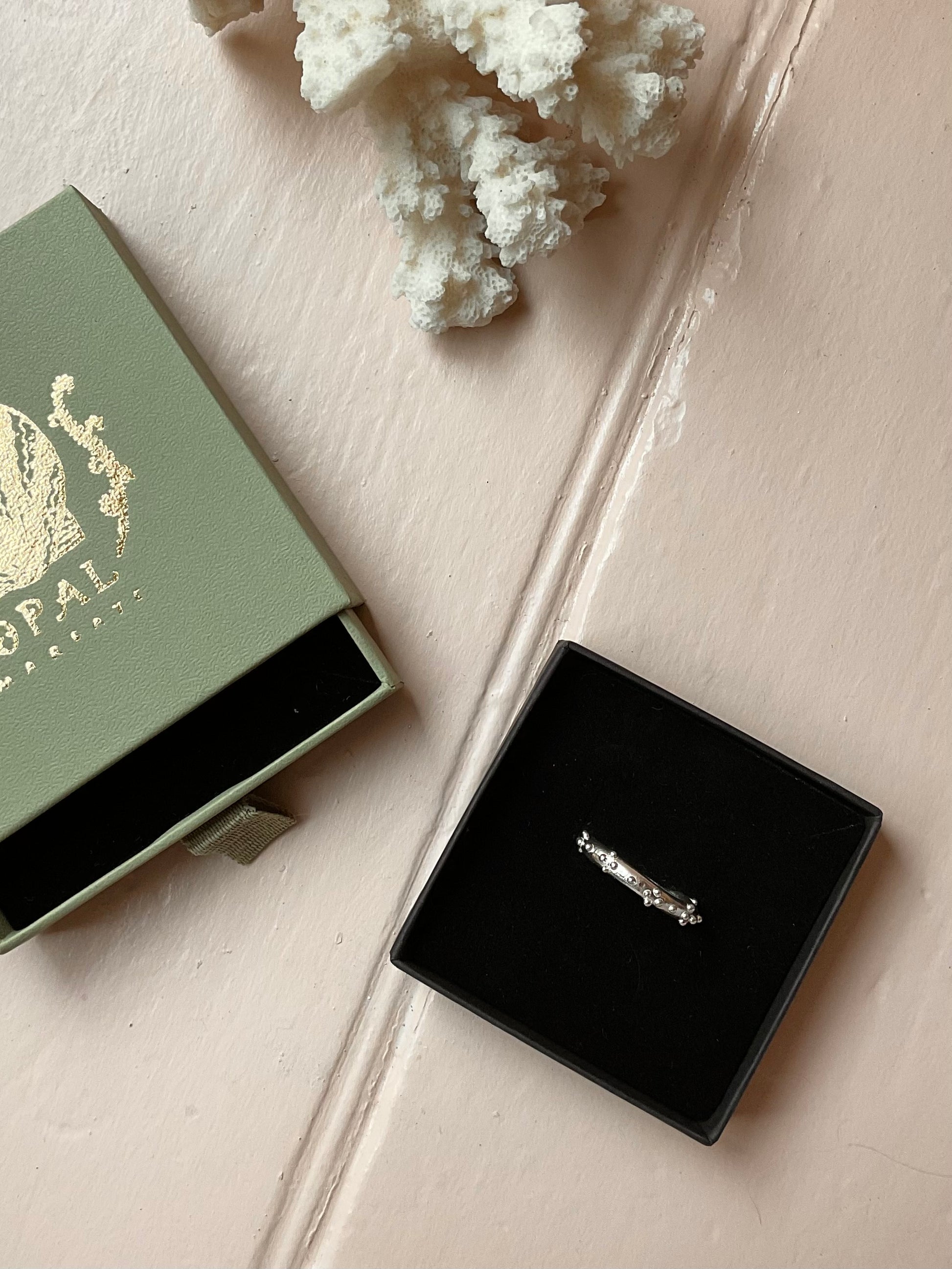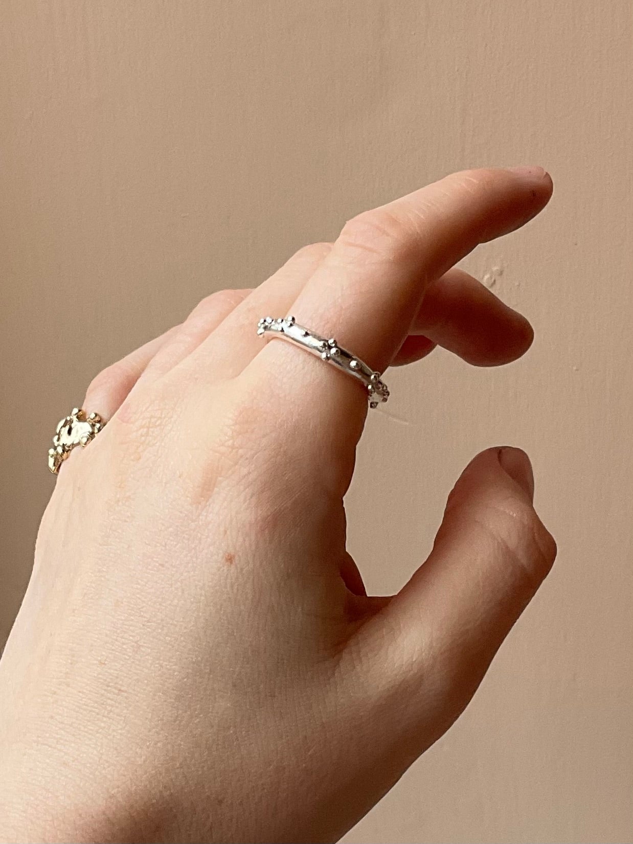 Handmade, silver stacking ring, heavily textured ring, with granulated detailing that forms little diamond patterns all over the band. Inspired by my love of bubbles.
