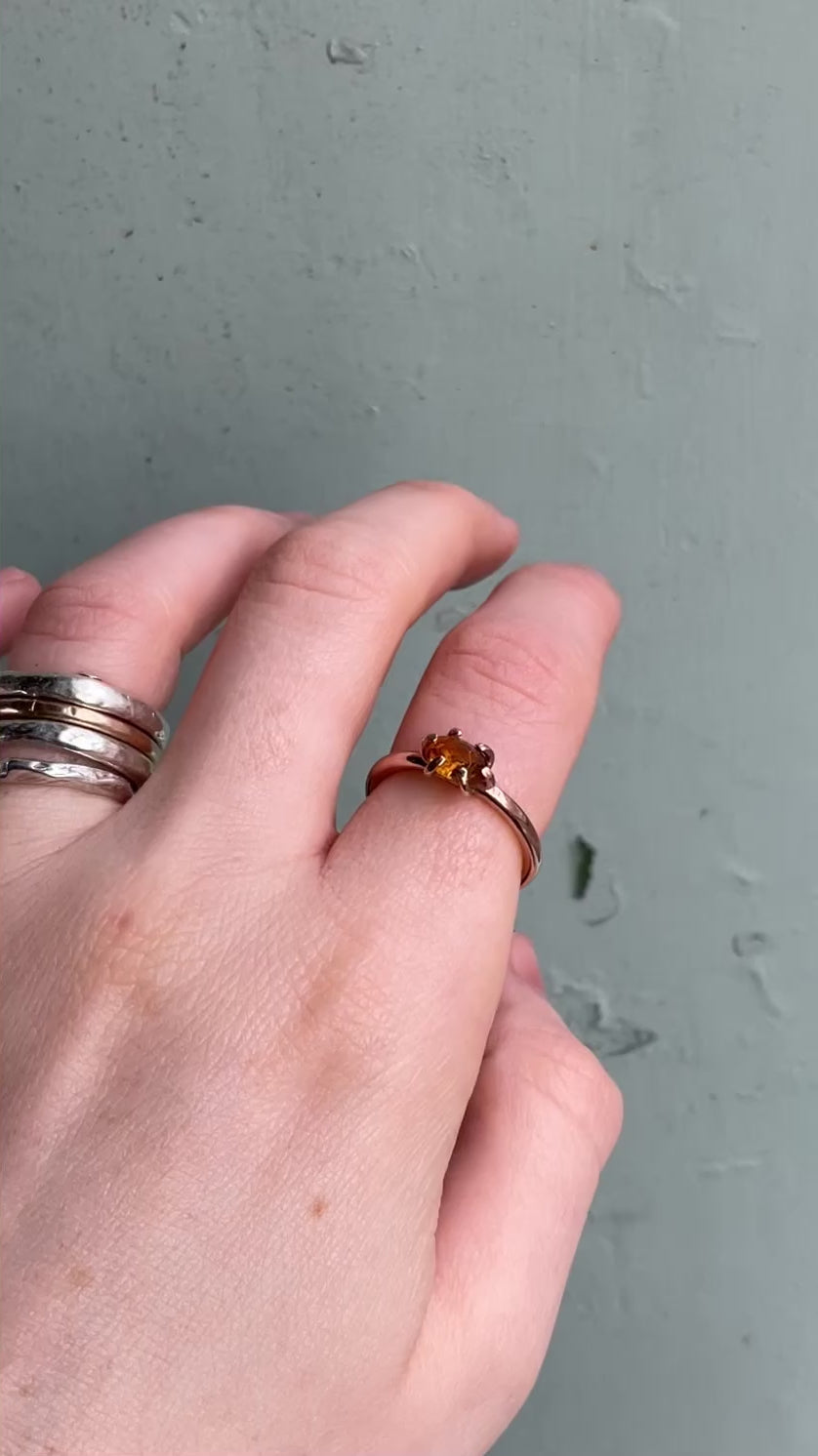 Made in Margate, OOAK solid, 9ct rose gold ring, topped with a beautiful, honey coloured citrine.