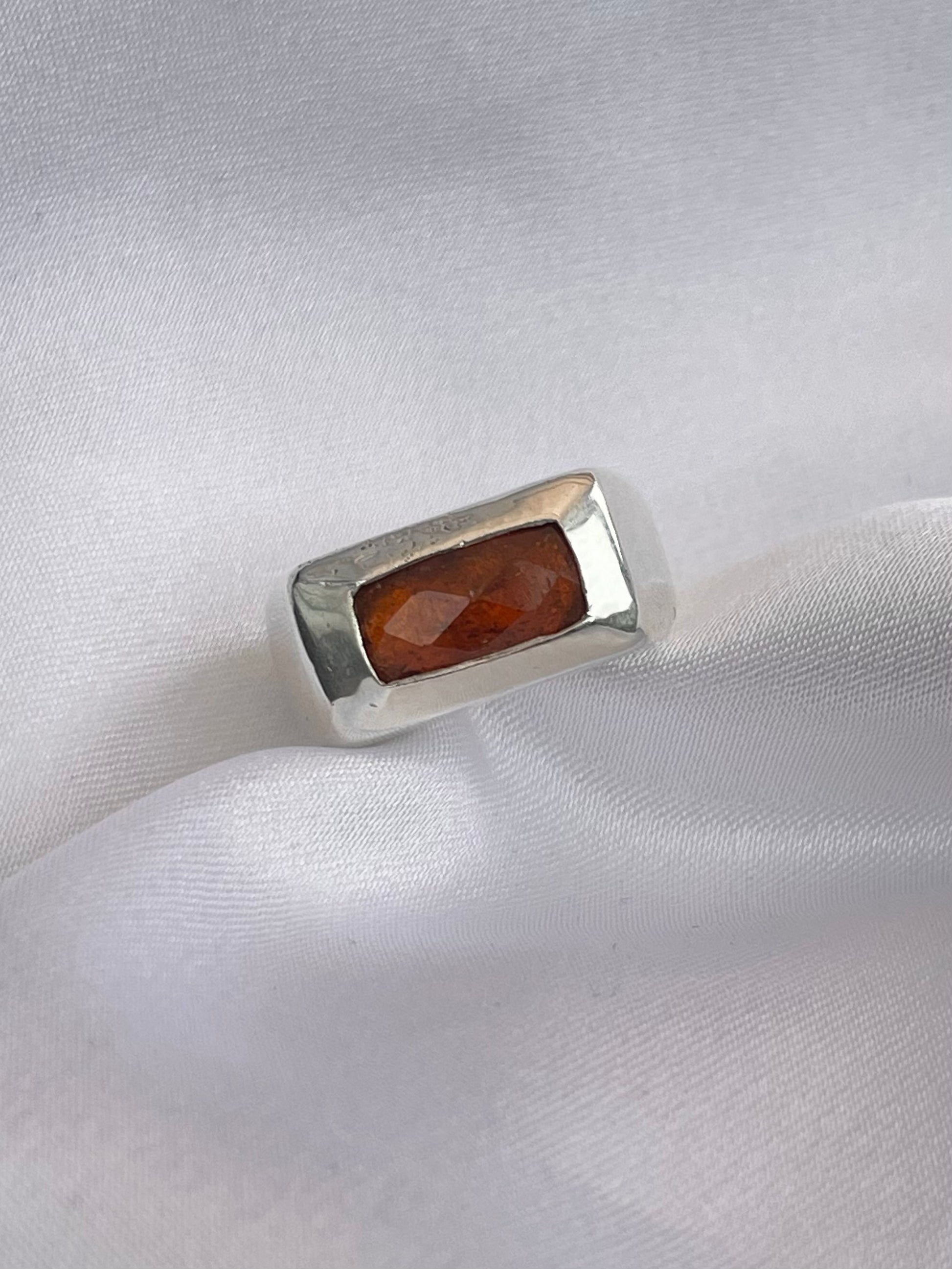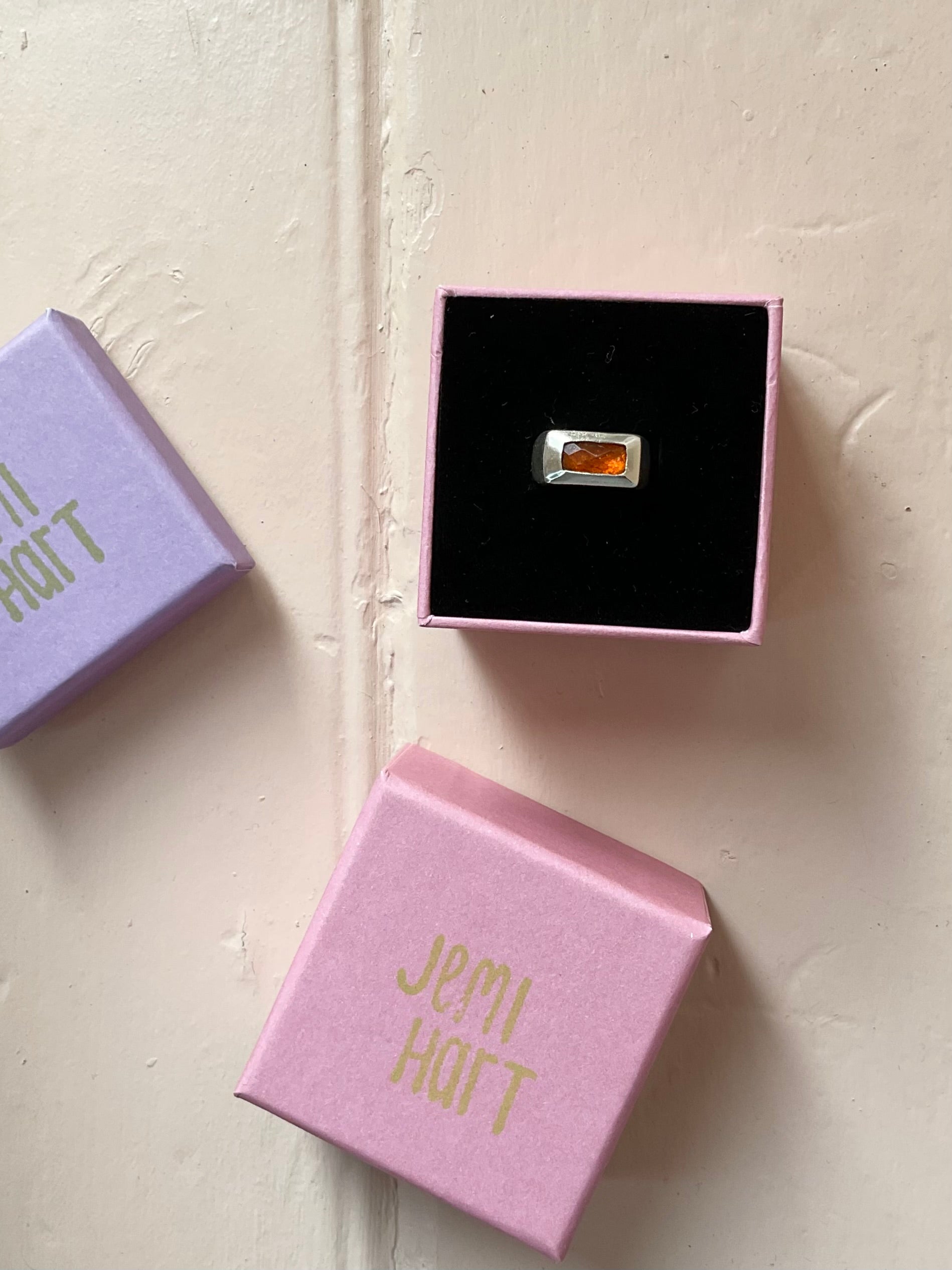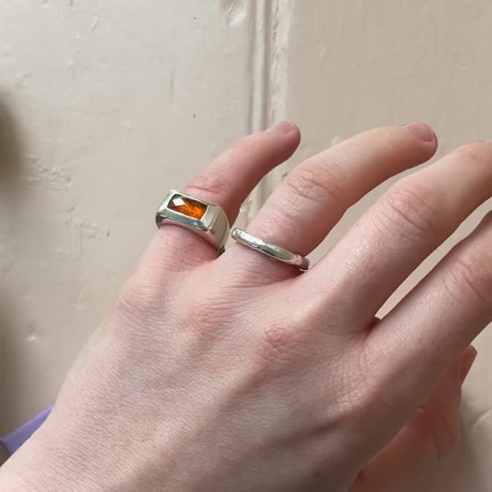 Handmade in Margate, Sterling silver signet-style ring, set with a rich, zesty Kyanite. Perfect worn alone as a pinky ring or as part of a stack, it’s low profile makes it comfortable for everyday wear.