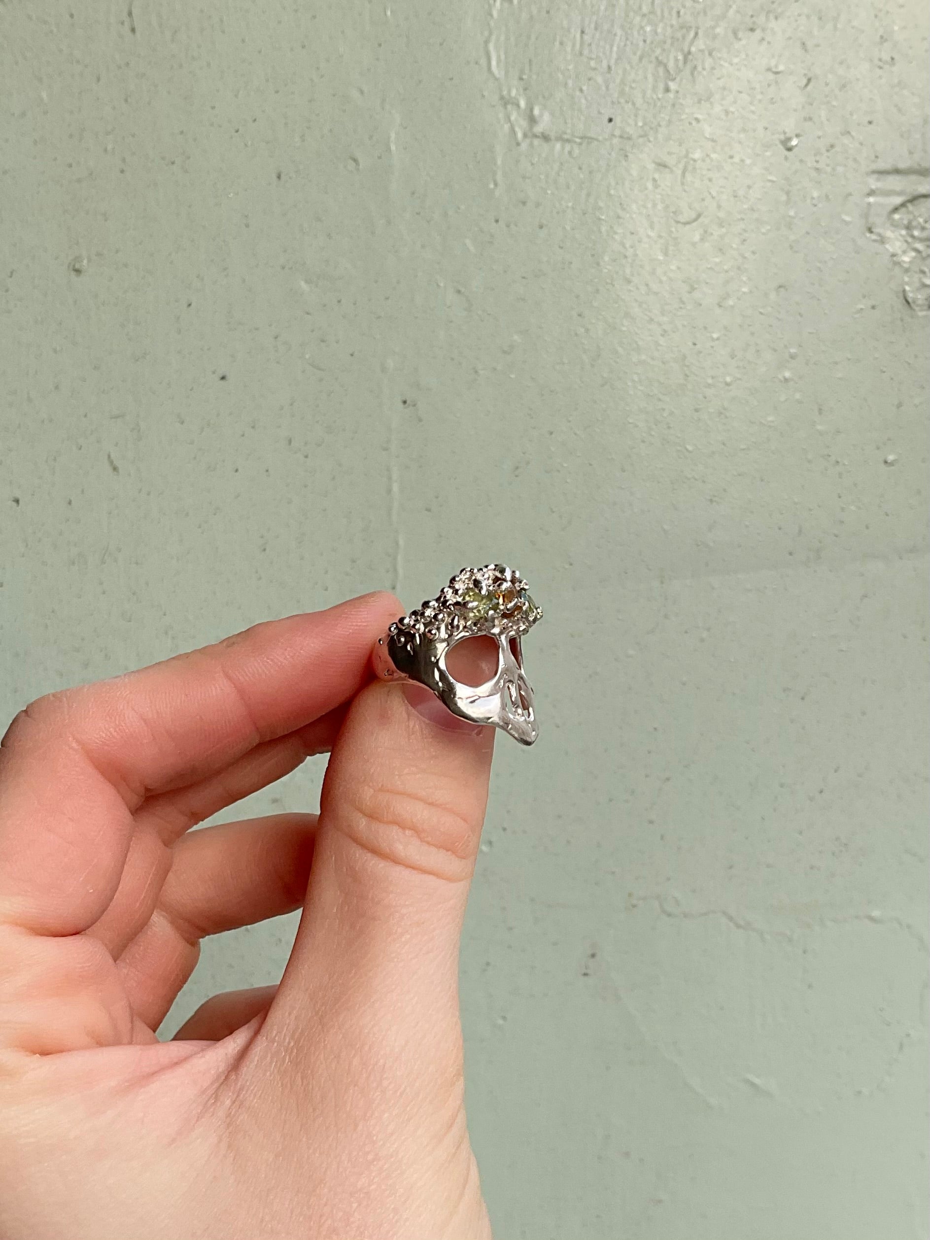 A statement ring, suitable for daily wear, the goonies ring has a low side profile and a barnacle encrusted crown of tourmalines.