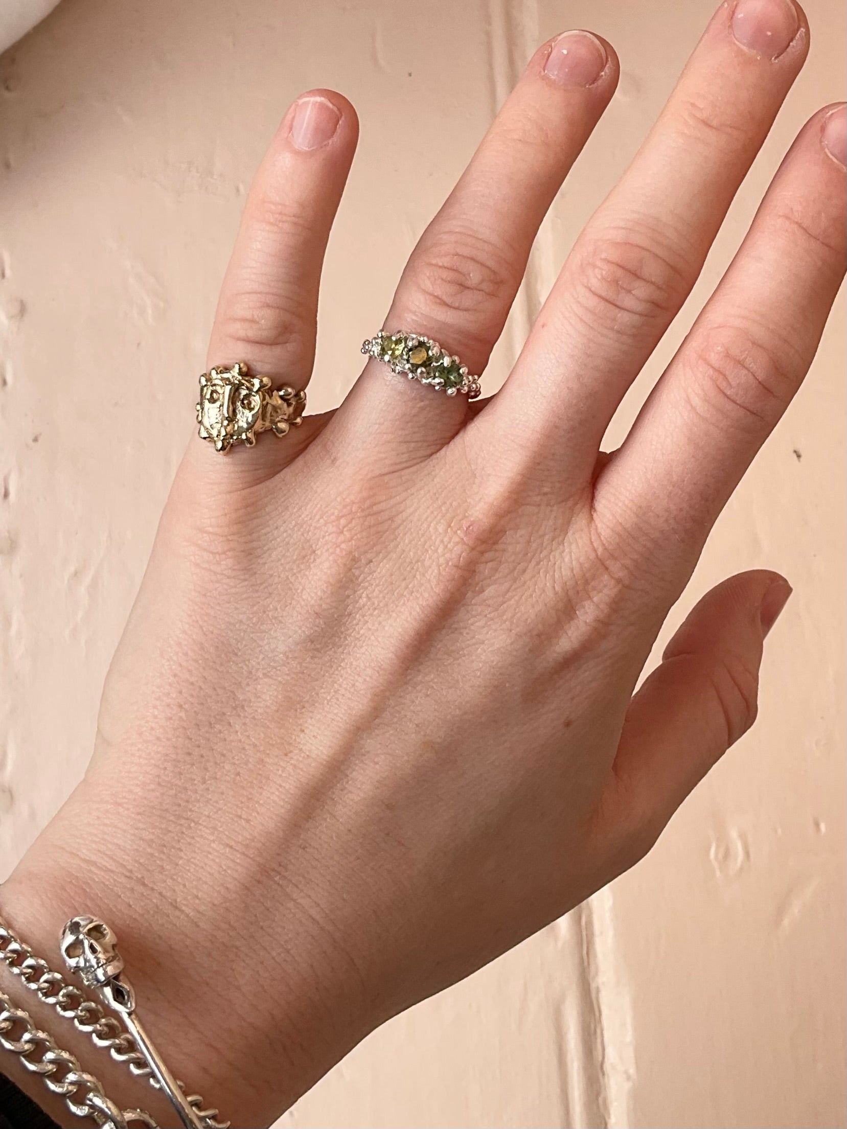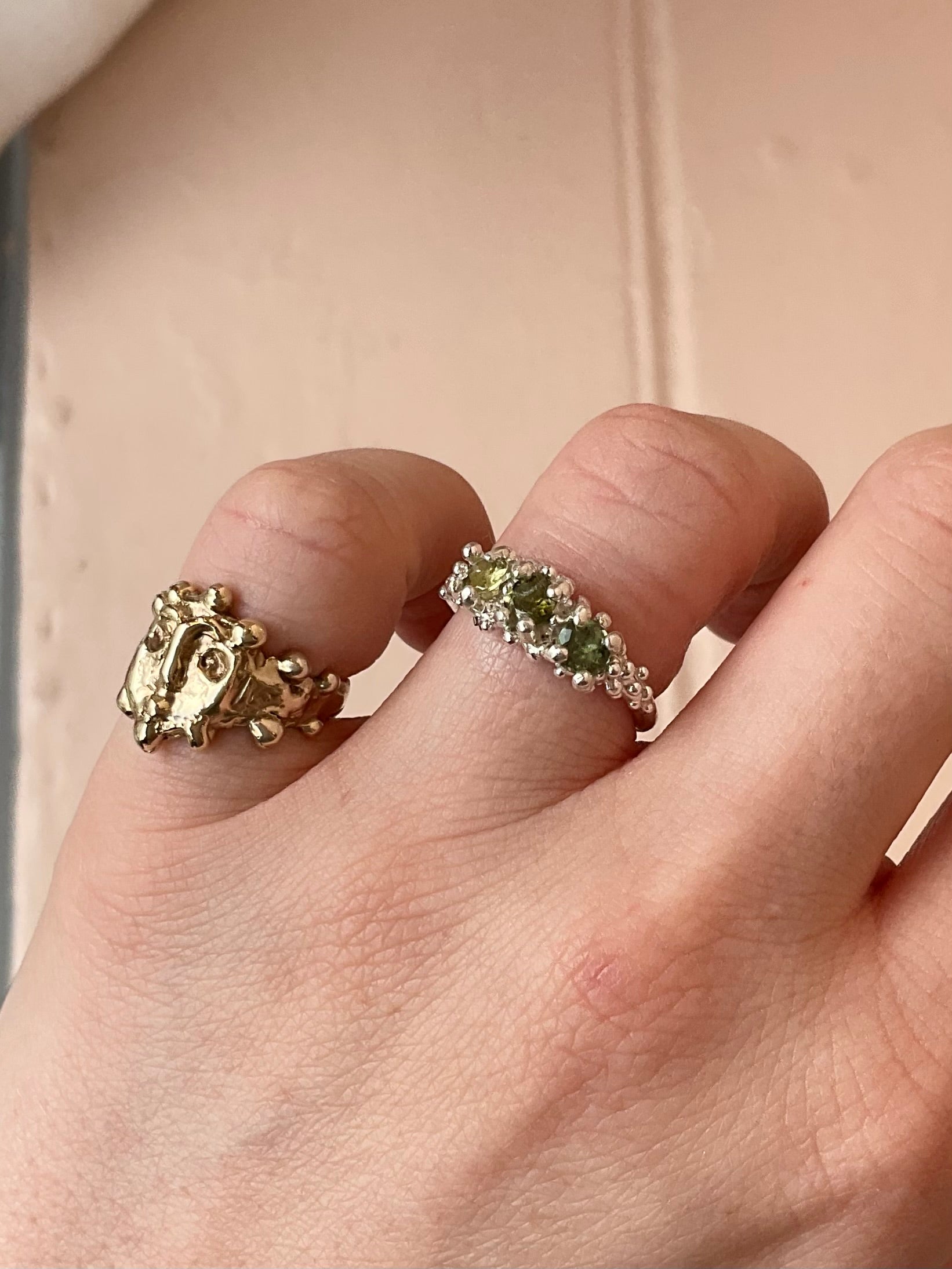Introducing the Tourmaline barnacle ring #5. Handmade in Margate, this one of a kind ring is the perfect marriage of rugged texture and juicy colour.